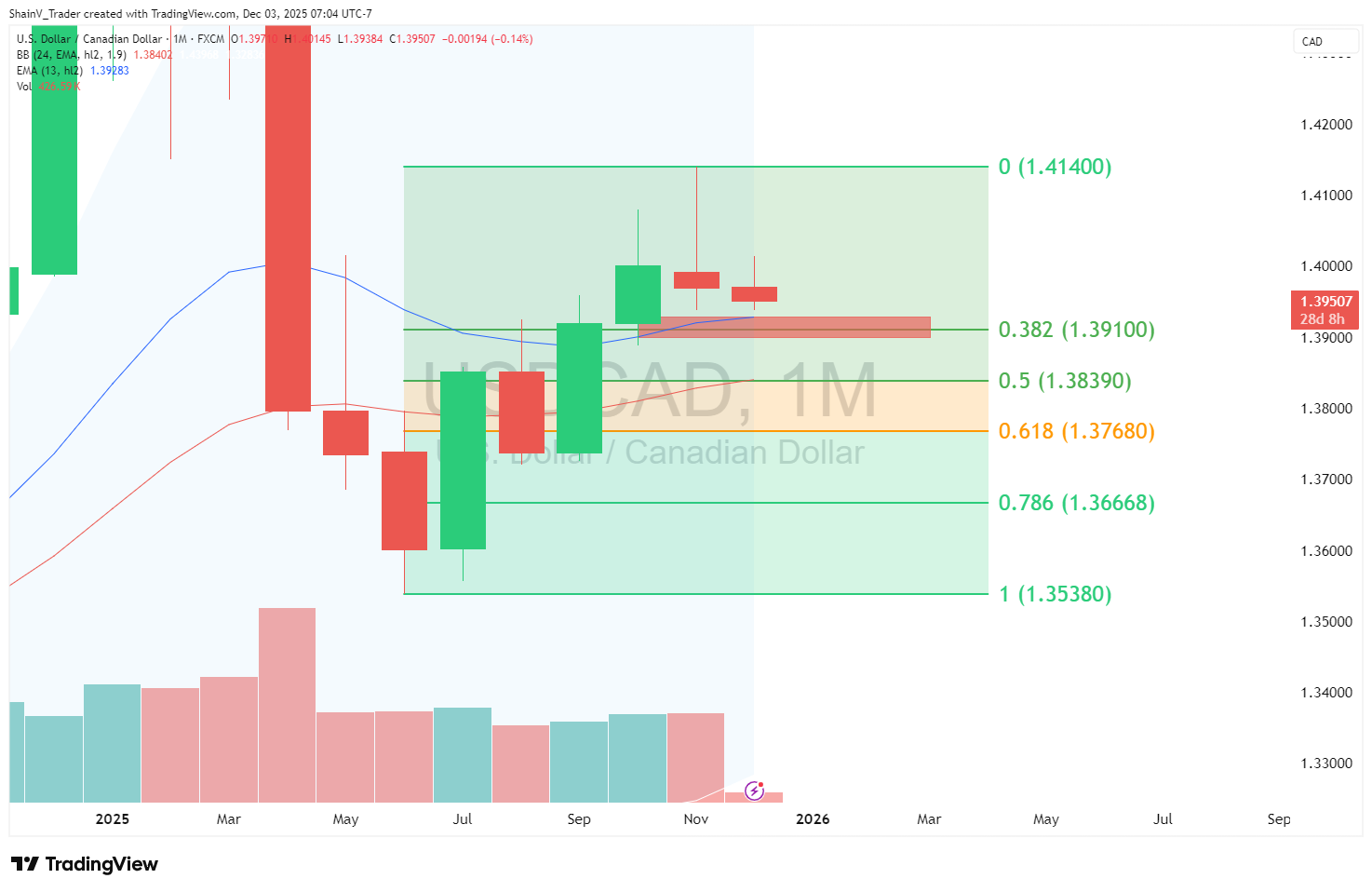 Monthly 38% Fibonacci Retracement, 1.3910